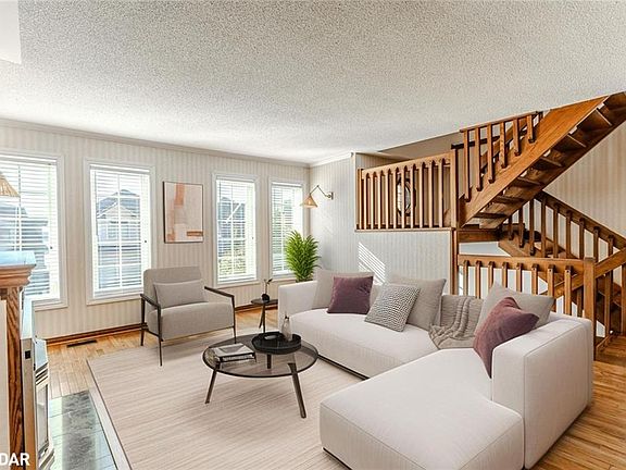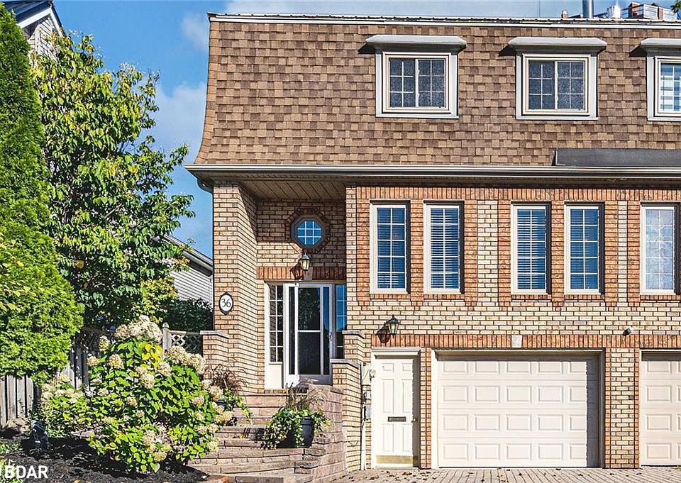 ELEGANTLY APPOINTED SEMI WITH WATER VIEWS ON PRESTIGIOUS KEMPENFELT DRIVE, OFFERING AN UNPARALLELED LOCATION STEPS TO THE WATERFRONT! Prestigious Kempenfelt Drive offers a rare opportunity to own a semi-detached home full of character and timeless charm, situated on a quiet one-way street surrounded by luxury properties and steps away from Kempenfelt Bay, with partial water views. From this location, daily life feels elevated with downtown shops, restaurants, cafes, Heritage Park, the marina, waterfront festivals, and the North Shore Trail all within walking distance. Curb appeal makes a statement with an all-brick exterior, distinctive windows, a durable metal roof, a unistone driveway, and an oversized single garage with inside entry. Newer windows and upgraded attic insulation add comfort and efficiency, while the interior showcases timeless details including hardwood floors, a wood staircase, crown moulding, classic trim and doors, and large sun-filled windows. The kitchen presents wood cabinetry, a mosaic backsplash, tile flooring, ample pantry storage, and a walkout to a spacious deck, while a separate formal dining room and a bright living room enhanced by a cozy gas fireplace bring warmth to every gathering. Ascend the stairs to find a cozy nook ideal for a desk or reading corner, along with three generously sized bedrooms, including a primary suite with a walk-in closet, all served by a 4-piece semi-ensuite. The basement is partially finished and includes a large laundry room and a 3-piece bathroom. A rear deck with glass and metal railing overlooks a flagstone patio surrounded by well-manicured gardens, offering a private outdoor escape. Bursting with charm, character, and a location that puts Barrie’s vibrant waterfront and downtown lifestyle right at your doorstep, this #HomeToStay is waiting to be loved by its next owners!