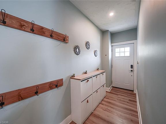 Vinyl plank flooringOpen concept main floorLarge windowsLed pot lightsRenovated kitchenQuartz countertopsPot filler