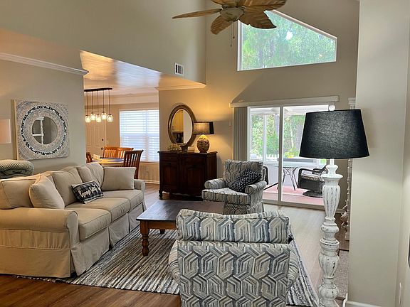 UPGRADES throughout, *ELEVATOR*, and just around the corner from old town Bluffton so bring your golf cart! Super clean, recently updated, with a beachy feel...just bring your suitcases to this turnkey, fully furnished townhome and enjoy the quiet + beautiful view from your private patio and backyard. 2 car attached garage completes this upscale home with all the extras including Fisher & Paykel appliances, LVP flooring, gas fireplace, screened porch/Florida room, tons of storage, plus jetted tub and dual shower in main bath. Minimum 6-month lease. 1 year preferred.