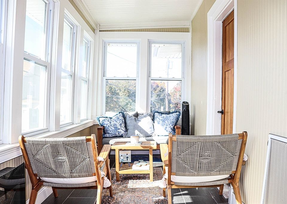 Discover refined living at Lancaster Street, Quincy in this two-bedroom apartment with a sunroom. Enjoy Quincy's lively offerings with nearby transport, eateries, boutiques, and the bustling center. The open floorplan transitions seamlessly from living to dining areas, with sunlight brightening the sunroom through elegant French doors. Recessed lighting and hardwood floors add a sophisticated touch. The stylish kitchen features granite countertops and modern appliances. Two luxurious baths, a bonus storage room, and a spacious primary bedroom with a walk-in closet enhance comfort. A third-floor laundry area & additional storage, paired with private off-street parking, provide convenience. Located less than a mile from Quincy Center train station, numerous transportation options are within reach. Available January 1st. $2650/month, tenants cover gas and electric, while water & sewer are included. Seeking tenants with solid credit and references. No pets and non-smoking please.