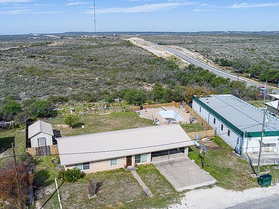 This charming 2-bedroom, 1-bathroom stone home sits on an.39-acre lot. Greeted by the durability of a metal roof, step inside to discover a spacious living area that effortlessly flows into an updated kitchen, that features stainless steel appliances and quartz countertops, creating a stylish yet functional focal point for the heart of the home. The property includes a convenient attached carport, basketball hoop and a practical storage building. The outdoor space is an entertainer's delight, featuring an in-ground pool complete with a diving board for those refreshing dips on warm summer days. As you soak in the atmosphere of 36 Langtry, don't forget to take in the sweeping views of the neighboring ranch. What sets this property apart even further is its very low property taxes, making it an even more attractive investment.