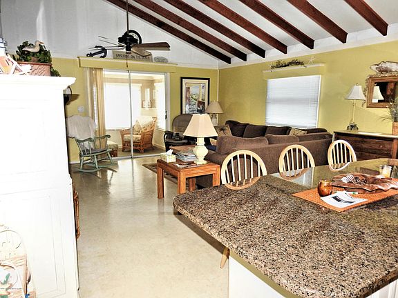 Open floor plan with cathedral ceiling. Three bedrooms, family room, designer kitchen with granite counters, enclosed porch, one full bathroom and outside shower. Large 40' x 110' lot with driveway, patio and oversized custom shed. Within the past 5 years: new kitchen, new vinyl siding, new roof, new Anderson windows, new exterior doors, entry porch, new central air conditioning, new hot water heater, and landscaping. Gas/baseboard heat for year-round enjoyment. 19-year land lease with potential for future purchase. (Taxes: $9,725/yr and Lease: $13,875). Great rental history!