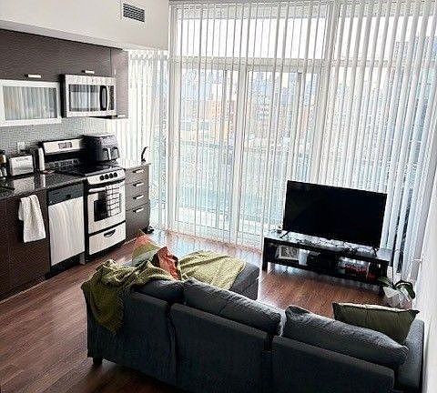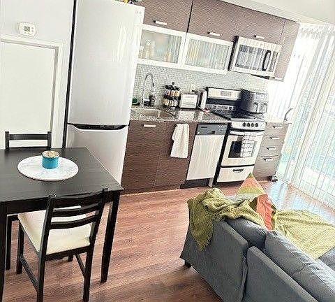 1 BDR+Den 1 Washroom Unit on Highly Sought-After Queen St West. Open concept space, east-facing balcony with an amazing unobstructed view of the city and the lake. Features wood floors, stainless Steel appliances , spa like washroom and granite countertop. Prime Queen West location: Streetcar At Your Doorstep, Minutes To Trinity Bellwood Park, King St West. Dining & Entertainment Surrounded by restaurants, bars, and entertainment options, including Liberty Village and Ossington Avenue hotspots. Amenities Include: Guest suites, newly renovated gym, 24 hours concierge, Bike storage, Massive party room, Meeting room and Games Room. MOVE IN NOVEMBER 1, 2025