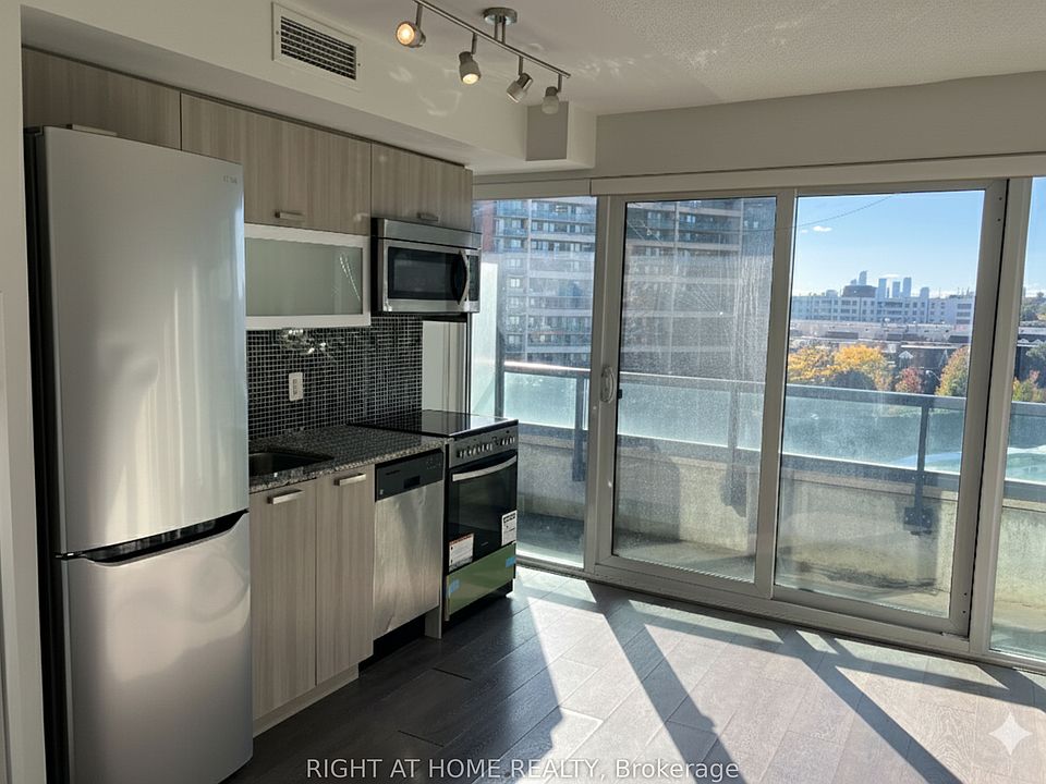 Experience urban living at its best in this bright and stylish 1-bedroom condo at Edge on Triangle Park, located at 36 Lisgar Street in the heart of Little Portugal. Bathed in natural light, this modern suite features floor-to-ceiling windows, laminate flooring throughout, and a functional open-concept layout. The sleek kitchen is complete with granite countertops, a modern backsplash, and stainless steel appliances, including a brand-new stainless steel oven. Step out onto the southwest-facing balcony to enjoy clear city views and plenty of sunshine. Freshly painted and move-in ready, the unit also includes ensuite laundry for your convenience. Set in one of Toronto's most vibrant neighbourhoods, just steps to Queen St. W, The Drake Hotel, Trinity Bellwoods Park, trendy shops, restaurants, nightlife, markets, and the TTC streetcar. Glass balcony door and blinds will be replaced/repaired. Perfect for anyone seeking a lively, connected, and contemporary lifestyle.