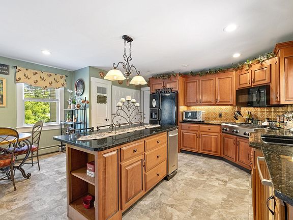 Welcome to this stunning 1880 Victorian home nestled on 8 acres of picturesque land. If you love entertaining, this home is your dream come true! The spacious kitchen boasts a 6-burner propane cooktop, dble oven, trash compactor, wine cooler, and a beautiful island - a chef's paradise. Revel in the warmth of the Cinnamon hardwood flooring throughout most of the home. Need a home office? The finished 3rd-floor room is ideal! Step out onto the fantastic deck that spans nearly the entire side of the house, complete w/a retractable awning for shade. Imagine unwinding with a book or a drink while listening to soothing sounds of your own waterfall cascading into the gorgeous fishpond. Concerned about guests wandering through your home during gatherings? No worries! Half of the barn has been transformed into a fantastic, partially finished bar area, complete with a fridge & more. This is a must-see property with deck access from three sections of the home. Upgrades include full insulation, chimney lining, and a 200-amp circuit breaker. Enjoy the convenience of first-floor laundry. Your attached direct-entry barn offers a workshop area, a 2-car auto door opener, & a second story for additional storage. The beautifully landscaped yard features perennials like white lilacs and blueberry bushes. The open lot is flat, lush, & wooded, making it the perfect backdrop. This home is brimming with personal touches throughout. Great commuter location - only 45 min to Manchester/20 min Concord.