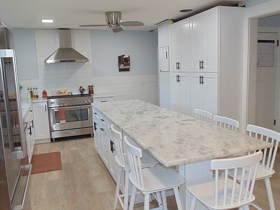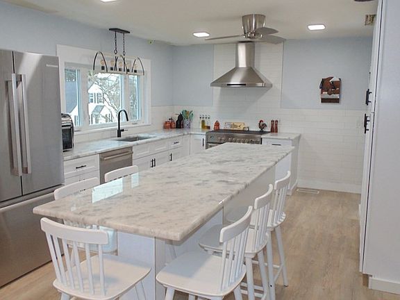 Exceptional 4 bedroom home with many premium custom upgrades and a blend of old charm in a desirable neighborhood. Open floor plan combining the kitchen, dining room and living room. First floor offers three bedrooms and an updated bathroom. Kitchen updated 2023, w/Custom Cabinets & Granite tops, Soft Close doors & drawers. SS Appliances (included) a 36" Verona Range, Exhaust Hood, Ceiling Fan, Refrig, Dishwasher & Disposal and a 9'+ Kitchen Island w/Granite top, custom subway tile backsplash, Lower Level offers a Primary Suite or Guest Suite w/walk-in Closet and stunning full bath, double sinks, and elegant custom shower, also a family/playroom with recessed lights. Home has whole house Water Treatment System w/Sediment & Carbon Filters; a 50G State Electric Heat Pump Hybrid Hot Water Heater. Mass Save Energy Audit completed in 2021. Fenced In yard and located close to all Town services and amenities.