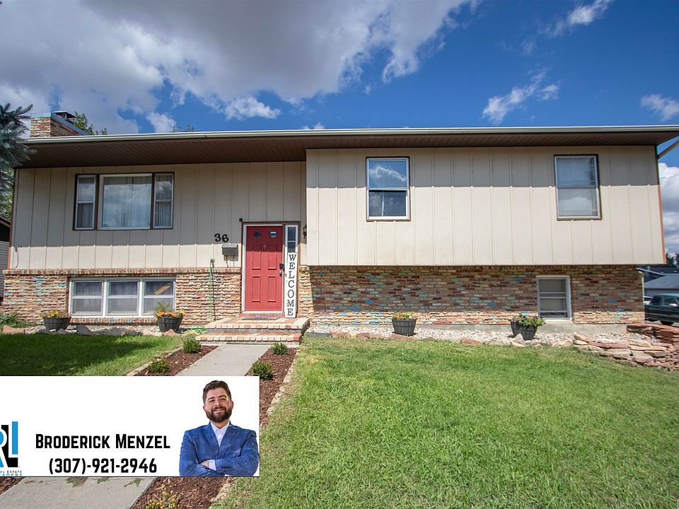 Check out this bi-level home situated on a corner lot close to 10,000 sqft in Paradise Valley! All 3 bedrooms are located upstairs with a main full bath and another in the master suite. Spacious kitchen with new Countertops. Dining area and living room off of the kitchen for gathering! Off of the dining room there is a large deck for entertaining. Downstairs there is a den with a wood burning stove and a half bath, perfect for lounging around. A large two car garage has lots of room for storage. To stay cool in the summer this home is equipped with Central Air! Just a block away from the Elementary School, Church and Golf Course this home is perfect for your family! Give Broderick Menzel a call at (307)-921-2946 to set up your showing.