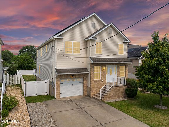 Back on Market as of 9/17! Welcome to your shore house in Port Monmouth - just a quick walk over to the beach OR NYC via the Belford Ferry, making it commuter friendly. This renovated newer built home boasts 2,712 sq ft of 4 bedrooms, 2.5 bathrooms, a large trex deck, and a fully fenced in yard. Enter through your SUN DRENCHED spacious living room featuring hardwood floors throughout which opens up into your kitchen and family room. Eat in kitchen features granite countertops, stainless steel appliances, and newer cabinets with a breakfast area. The adjacent family room features a gas fireplace. Powder room & utility room completes this level. Sliders take you into your NEW 20x30 trex deck & amazing backyard with 6 foot vinyl privacy fencing. Upstairs you will find 4 spacious bedrooms & 2nd floor laundry. Large master suite features a grand WIC & huge en-suite with double vanity, jacuzzi tub, and shower. Ground level garage access & storage. Crawl space basement for additional storage. Two zone HVAC. Power positive solar panels. Both AC's replaced in 2023. Large attic for storage. 1 car garage with 2 car driveway fits 4 cars. Free parking at Belford Ferry. Huge redevelopment plans in growing township. 1 Block to the beach with a view of NYC & fantastic seasonal fireworks from NYC & Coney Island.