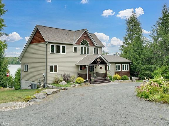 Panoramic views of Lake Manitouwabing take center stage in this beautifully crafted lake house, visible from nearly every room in the house. Whether you're enjoying a morning coffee or hosting family and friends, the ever-changing lake vista is your daily backdrop. Lovingly maintained by the same family for almost 20 years, this stunning property offers 3,533 sqft of finished living space on a private lot at the end of a quiet, municipally maintained cul-de-sac. The lot itself is a rare gem, blending lush forest, bedrock, open green space & a gradual slope to the waterfront, perfect for lakeside enjoyment for all ages. Inside, thoughtful design meets superior craftsmanship, with slate tile, hardwood floors, pine ceilings, wall treatments and mouldings. The great room features soaring ceilings & stone fireplace, making it the perfect gathering place with a breathtaking view. The kitchen is both timeless and functional, boasting solid maple cabinetry, granite countertops & stainless-steel appliances. With 3+2 bedrooms and 3.5 bathrooms, there’s space and comfort for the whole family. The fully finished basement features 9-foot ceilings, in-floor heating, wet bar & direct access to the waterfront. Enjoy 151 ft of clean, deep, shoreline and a premium docking system with 2 covered boat slips, lift systems, and approx 18ft of water depth off the dock's end - ideal for swimming and boating. The insulated 1,357 sqft garage & workshop is a hobbyist’s dream, with a 2-post car lift, roughed-in radiant in-floor heating and upper loft, plus many inclusions. Take a scenic 15 min boat ride to championship golf course, Manitou Ridge, for a round of golf or bite to eat at their beautiful clubhouse & patio. Both McKellar & Parry Sound are a short drive for groceries, local eateries and all other amenities. This truly turnkey offering blends natural beauty, modern convenience + many premium extras into an exceptional year-round waterfront home that is ready for immediate enjoyment!