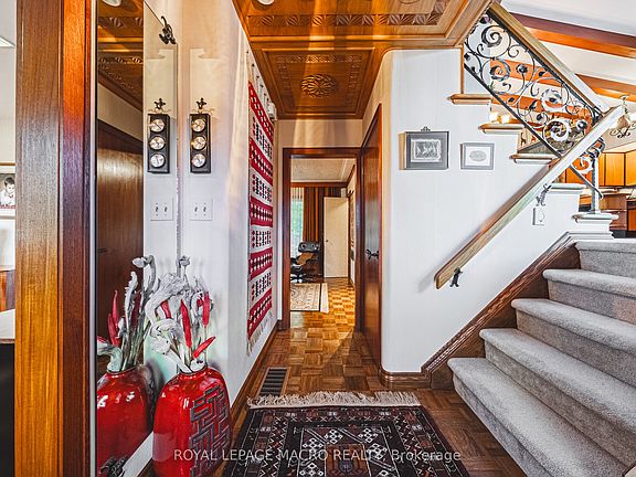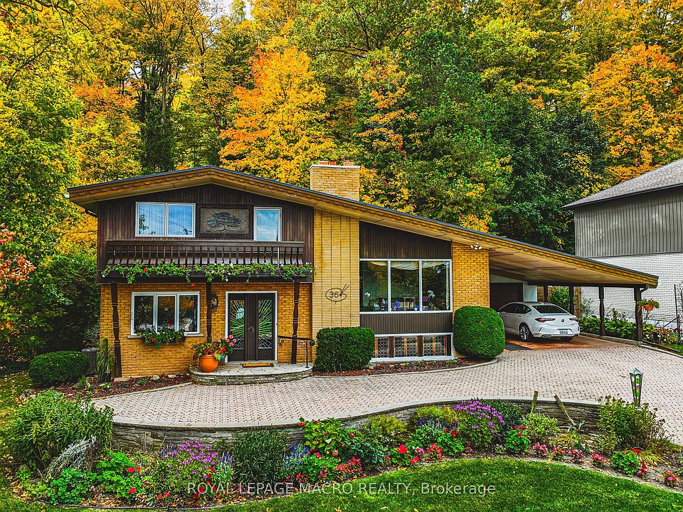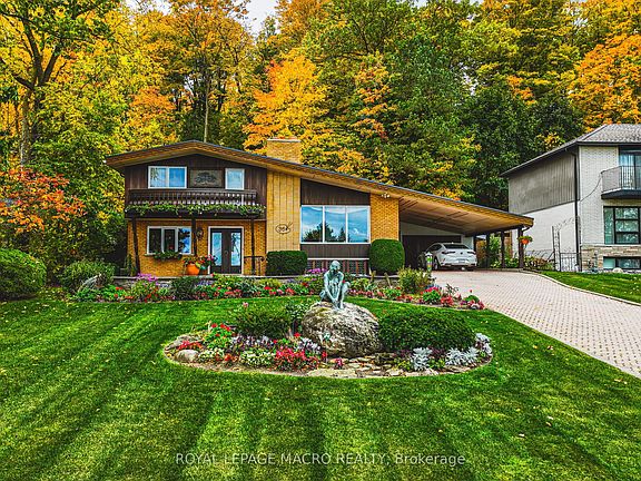 A true artists home rich in craftsmanship, history and heart. Perfectly positioned along the Niagara Escarpment with direct access to the Bruce Trail, this custom built home, one owner sprawling side split is a rare find. Set on a 70 ft x 244 lot, it has been celebrated with 24 Trillium Awards & 6 Prestigious Pink Awards for its exceptional landscaping & design, a testament to the pride of ownership found throughout. Enjoy unobstructed views of Lake Ontario & the Toronto skyline framed by mature trees & vibrant perennials, featuring a pond filled with golden orfes, goldfish, and blooming water lilies. Across the street a community park with playground & basketball court adds to the settings appeal, while GO Transit & QEW access are just minutes away, offering easy connectivity to surrounding communities. Inside, artistry meets function with thoughtful touches & custom details. The gourmet teak kitchen boasts granite counters & built in Miele & Gaggenau appliances, perfect for those who value fine craftsmanship. Warm living spaces with a fireplace, intricate carved woodwork & timeless architectural detail, creating a home as comfortable as it is inspiring. Recent updates include a tarmac roof (2017), air conditioning (2023), furnace (2011), washer and dryer (2023). With parking for nine & a full workshop with hot & cold running water, this extraordinary home blends artistry, nature & convenience in perfect harmony.