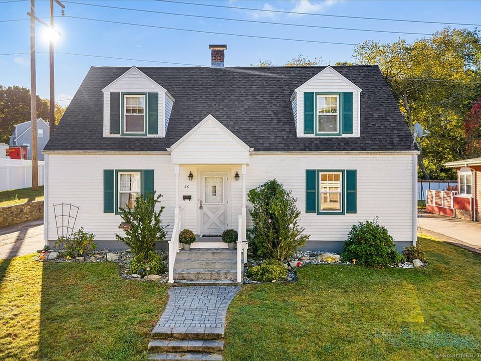Welcome to this charming and spacious Cape Cod home, perfectly nestled in a quiet neighborhood. Featuring three bedrooms and two full bathrooms, this home is designed for easy living, with a convenient first-floor bedroom and bath and two additional bedrooms plus a full bath upstairs. The large eat-in kitchen is perfect for casual meals and gatherings, and the beautiful hardwood floors add warmth throughout. A brand-new roof offers peace of mind, and the full basement provides endless possibilities for a workshop, or extra storage. Outside you'll find a flat backyard with a firepit and shed. This home is conveniently located near shopping, highways, New London Submarine base, outdoor activities and more-this home is a must see!
