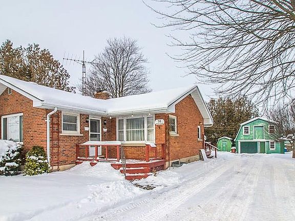 Excellent opportunity for one level living in this 3 bedroom, 3 bathroom home in the quaint village of Brucefield. This well-appointed red brick bungalow is ready for immediate possession and is perfect for the first-time buyer, retiree, or the growing family. The main floor boasts a master bedroom with a 2-piece ensuite, a kitchen that opens up to an oversized dining area, and an expansive living room/family room and main floor laundry. The lower level is finished with a 3rd bedroom, 4 pc bath, workshop with outside entrance access, and a rec room with a wood fireplace which keeps this home cozy during winter months and keeps utility bills to a minimum. A 19x24 ft detached workshop/garage with hydro makes great space for extra storage space or the handyman. This home is the perfect opportunity to get into the market at an affordable price.