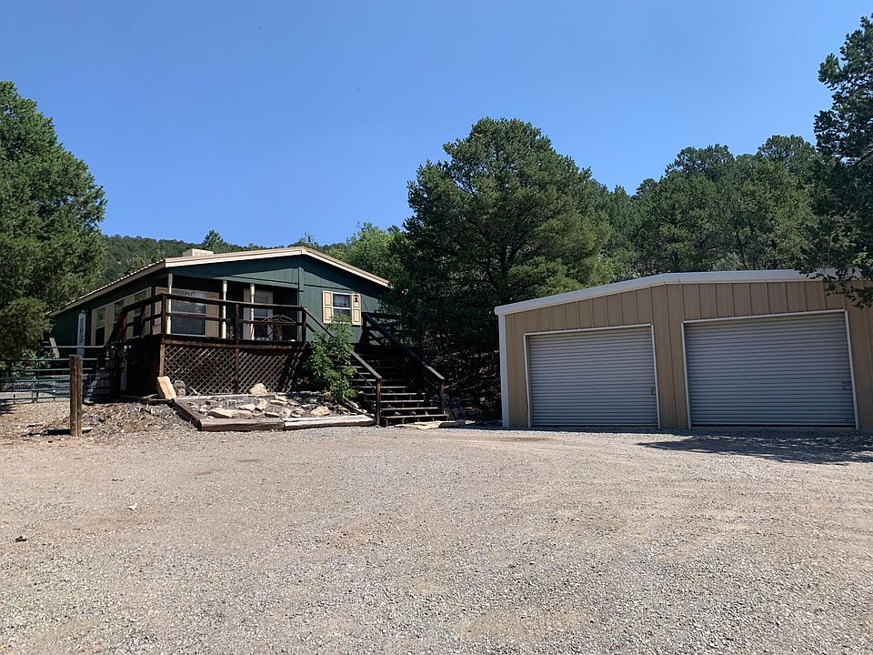Quiet, secluded property off of Juan Tomas near Hwy 337. 3 bedroom, 2 bathroom double wide manufactured home sitting on 7+ wooded acres in a gated community. Home has a large redwood front deck and 2-car detached metal garage. Interior has wood laminate flooring throughout. Property borders National Forest with easy access to a large network of hiking and biking trails. Forced-air heating and evaporative cooling. Home will be available Dec. 1st.