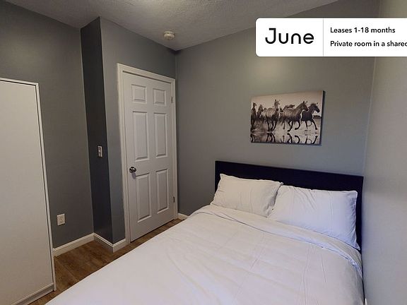 This Queen room in North End is available on a 12 month lease or a flexible short term (31 to 364 days) lease. You pick your custom start and end date. Monthly rent rate is determined by furnishing preference, move-in date and move-out date. Speak to a June representative for recommendations on the best stay duration for the lowest rate.
