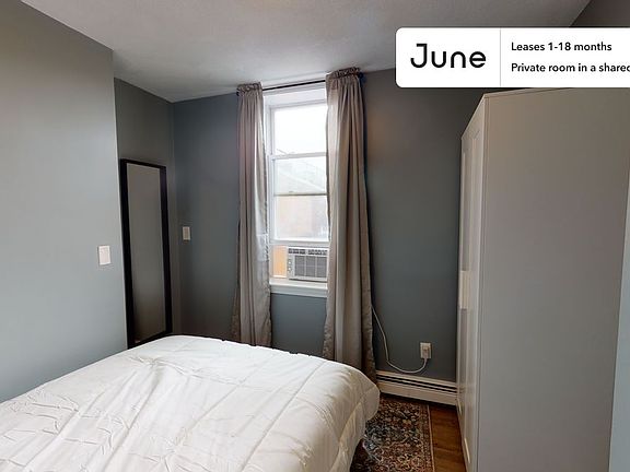 This Queen room in North End is available on a 12 month lease or a flexible short term (31 to 364 days) lease. You pick your custom start and end date. Monthly rent rate is determined by furnishing preference, move-in date and move-out date. Speak to a June representative for recommendations on the best stay duration for the lowest rate.