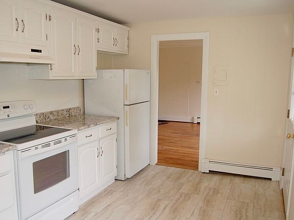 Available now. Nicely updated 1st floor one bedroom apartment with separate entrance in charming 3-family antique home. Living room, eat-in kitchen with tile floor and granite counters, bathroom with marble tile and glass walled shower, and good sized bedroom with large closet. Wood floors run from living room through bedroom. Newer windows throughout. 2 parking spaces available just outside entrance door. Large common yard with fire pit area abuts Jameson Fields which creates large swath of open space in rear of home. Laundry in common basement shared by two units. Trash, grounds maintenance, plowing, water/sewer included. Central location next to town center with restaurants, post office, bank, etc.. Tenant responsible for 1 month rental fee, 1st, and security at time of signing.