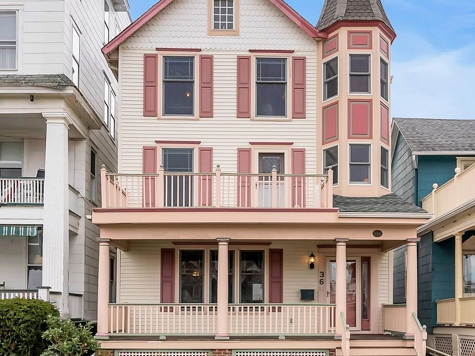 This Majestic Queen Anne Victorian Boasting GARAGE, OCEAN VIEWS, 2 EXPANSIVE FRONT PORCHES, OUTDOOR SHOWER, 240 sq.ft. PRIVATE REAR DECK, Large BACK YARD w/20 Ft. Holly Trees, 6BRs & 3.5BAs is Regally Poised on Ocean Groves Most Coveted Street, Ocean Pathway. The Welcoming Sunlit Home w/Stunning Hardwood Floors & Updated Windows Showcases an Open Floor Plan w/Large Living/Dining Room, 1/2BA, Eat-In-Kitchen & Pantry w/SS Appliances. Sliders to Back Deck, Yard & Garage Make it Perfect for Apres Beach BBQ. The 2nd Fl Sitting/Landing Area (Think Card/Playroom) Leads to An Upper Porch w/Sweeping Views of The Atlantic, Asbury & Auditorium. The Master Suite Comfortably Fits a King Bed & Features Loads of Closets, Make-Up Area & Full BA. Sweet 2nd BR w/OP Views, Full BA w/W&D Complete the 2nd Fl. Find Another Fabulous Sunlit Landing/Sitting Area on the 3rd Fl (Think Office/Yoga/Art Studio) w/More Wonderful Views. A Full BA & 4 Additional BRs w/Door Numbers...Lovely Remnants from The Late 1800s & 1900's When It Was The Washington Villa & Later The Cheltenham). An Historic & Contemporary Gem is an Entertainers Dream w/Parking! What More Could You Want!