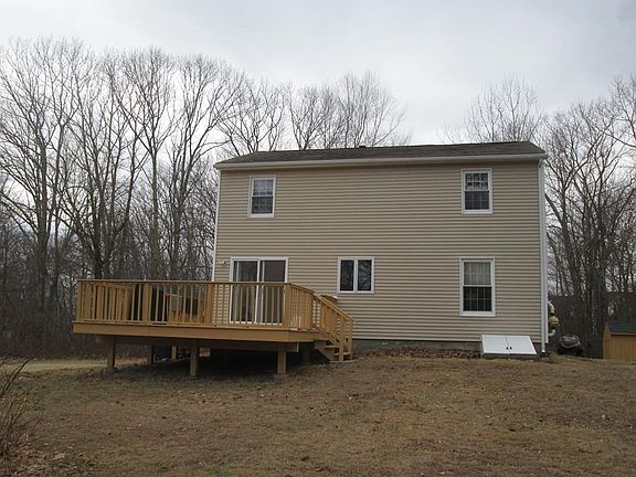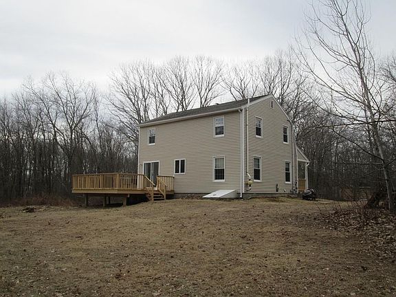 Privacy Galore In This Well Maintained Home On 8.4 Acres! Applianced Eat In Kitchen With Walnut Cabinets & Slider To Entertaining Sized 18x18.5 Deck! Formal Dining Room With Wood Floor! Over sized NEW Carpeted Living Room! 2 NEW Baths with Ceramic Tile Floors! 2nd Level Features 3 Spacious Bedrooms With Wood Floors, Ceiling Fans & Full Closets! Enjoy Quiet Time On The Front Farmers Porch All Freshly Painted! Wired For Generator! Full Basement For Abundant Storage! Easy Commute To Mass. Pike & Major Highways!