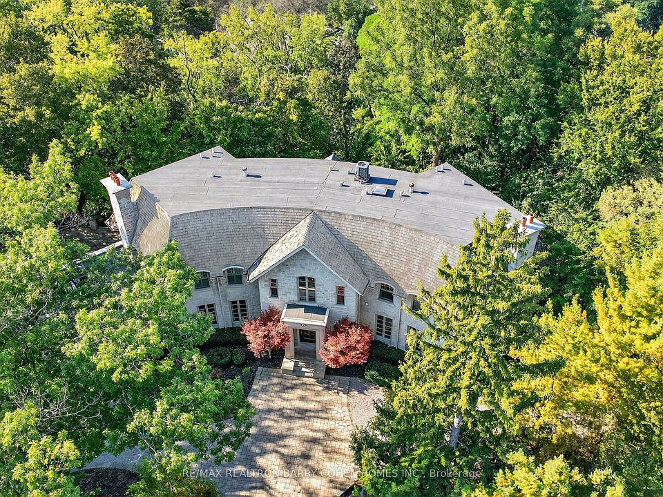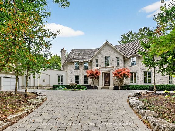 Backs Onto Ravine! Perched gracefully at the highest point of Hoggs Hollow, this French Château inspired masterpiece sits on a spectacular 239.08 x 207.81 ft ravine lot (approx. 1.14 acres). Designed by Dee Dee Taylor Hannah and built by award-winning builder Michael Rossini, this timeless stone estate offers over 10,000 sq.ft. of luxurious living space, blending European elegance with modern comfort. The homes distinctive curved and symmetrical design showcases architectural artistry rarely seen today. Featuring 4 bedrooms with ensuites, 9 washrooms, and a 3-car garage with a circular driveway accommodating up to 15 cars, all principal rooms face west, overlooking the serene ravine. A grand marble foyer, curved hallways, and custom millwork opens to elegant living and dining rooms that walk out to the ravine and garden. Two libraries on main floor, five fireplaces, built-in speakers, 10-ft ceilings, and hardwood floors throughout. The gourmet kitchen with double granite islands and an open-concept family room with motorized curtains creates a warm and inviting space for entertaining.Step out to a 700 sq.ft. patio with outdoor fireplace and panoramic ravine views. The primary suite features a lavish 7-piece ensuite, his & her walk-in closets, and heated bathroom floors. The walk-out lower level wth heated floors includes a home theatre, wine cellar, sauna, wet bar, nanny/guest ensuite, and a recreation room with fireplace opening directly to the backyard oasis.The heated concrete pool with cascading waterfall, framed by mature trees, creates a private, resort-like retreat. A rare offering combining elegance, privacy, and tranquility, just moments from the Granite Club, top private schools (Crescent, TFS, Havergal, UCC, BSS), fine dining, and Rosedale & Don Valley Golf Clubs.A true statement of taste, craftsmanship, and enduring luxury in one of Torontos most prestigious enclaves.