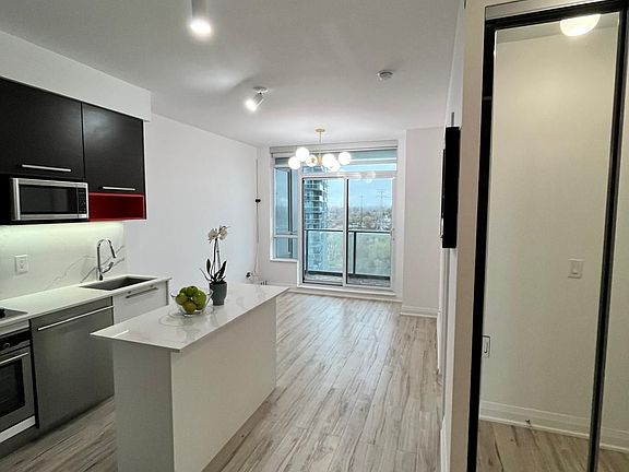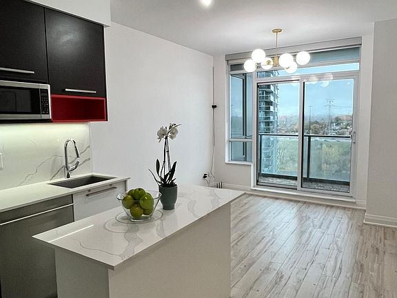 A must see beautifully upgraded 1-bedroom at the vibrant Key West Condos. Modern open concept kitchen with custom built island. Additional closet organization and beautiful finishes equipped with stainless-steel appliances and custom smart lighting and blinds. Walk out balcony from the living room. Minutes walk to the beach, park, marina and biking trails. TTC at your footstep. The building offers great amenities including gym, game room, party room, BBQ area. Perfect for young professionals. The unit comes with an underground parking spot and locker. 24/7 concierge services.
