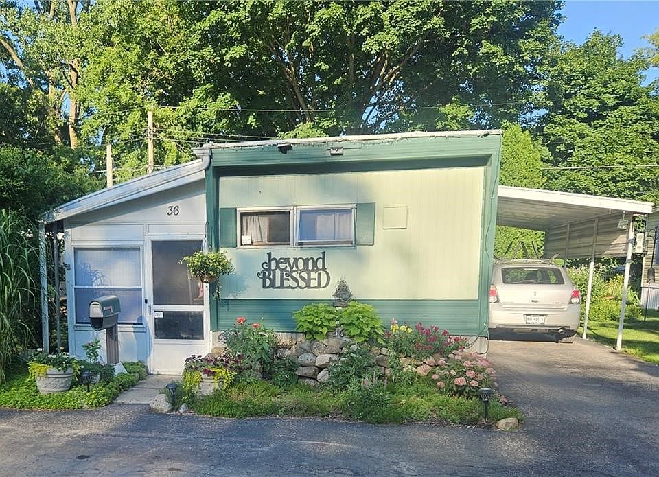 This spacious 2-bedroom, 1-bathroom mobile home in Penfield, NY offers comfortable and convenient living in a quiet, friendly neighborhood. The home features blown-in insulation for year-round energy efficiency, a recently recoated roof (2025), and a newer AC unit to keep things cool in the summer. Inside, you’ll find a well-designed layout with ample living space and plenty of storage throughout. Outside, enjoy a fully fenced yard with beautiful landscaping, perfect for relaxing or entertaining. Additional storage is available in exterior shed, porch, and covered spaces. The location is ideal—close to shopping, dining, schools, and major roadways while still offering a peaceful setting. This move-in ready home combines comfort, functionality, and great value in one appealing package for an affordable price! Subject to park approval.