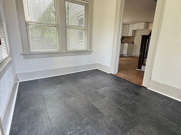 Spacious kitchenDetached garageEnclosed porchLarge backyardUpdated flooring