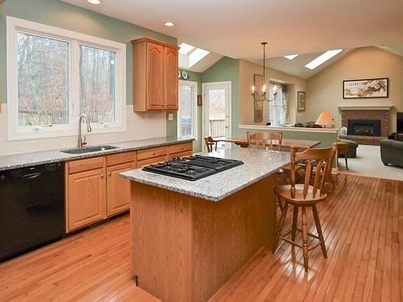 A spacious home with a modern layout, this bright, sunny well designed 1999 Colonial is elevated above the roadway on a quiet side street near town. The family room, directly off the updated kitchen and adjoining 600 sq. ft. bonus room, has skylights and a gas fireplace. The front to back living and dining room, corner office, large laundry room and half bath complete the first floor. The second floor has a private master with two walk-in closets, adjoining sitting room and en suite bath with Jacuzzi and separate shower. The three additional bedrooms are well sized and the family bath has a vanity with a double sink. The grounds are lovely and at almost an acre there is sufficient space for active family fun. During fair weather, the deck, off the kitchen, extends living space into the backyard.