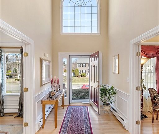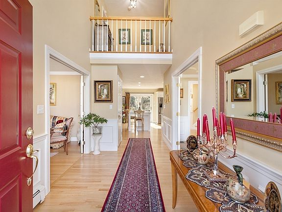 Classic center entrance Colonial located in a desirable cul de sac neighborhood. Quality improvements create a haven for easy living at its best! Beautiful front to back entry foyer opens to a formal living and dining room, family room with gas fireplace and open concept gourmet kitchen with new cabinets, quartz countertops and a center island. The second floor offers three bedrooms, all generous size, including a master suite with a stunning bath. All baths have been updated with new quartz vanity tops and porcelain floors! There is a second floor great room with a gas fireplace and vaulted ceiling that would make a great home office or fourth bedroom. Laundry/utility room located on second floor with Speed Queen washer and dryer. Full, unfinished, walk-out basement offers expansion possibilities. Attached two-car garage has a tool wall, built-in shelves plus storage closet. Outdoor space professionally landscaped, sprinkler system and deck overlooking the back yard