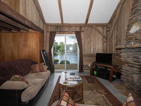 WATERFRONT property in Spencer on Sugden Reservoir perfect for a first time buyer or someone looking to downsize! A beautiful stone fireplace serves as the centerpiece of the spacious living room characterized by the woodwork and the gorgeous view of the lake right out of the slider. Also on the main level is the kitchen with plenty of cabinet space and a full bathroom. A spiral staircase ushers you up to your new bedroom. Imagine waking up to watch the sunrise over the lake with your morning cup of coffee. This is the perfect place to enjoy some peace and tranquility on gorgeous waterfront setting. There's no place like home!
