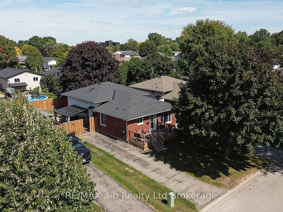 Be sure to click the video play button for additional photos and a full property tour! Come discover this well-kept 4-level back split in the welcoming community of Trafalgar Heights. Offering 3+1 bedrooms and multiple levels of finished living space, this move-in ready brick home is designed for todays lifestyle, with the flexibility to adapt as your needs change.Step inside to a bright, open layout enhanced by hardwood floors, ceramic tile, and updated light fixtures. The main level features a sun-filled living room and an inviting kitchen with stainless steel appliances (2023), refaced cabinetry, and modern finishes. The adjoining dining space with a large table/island is perfect for family meals or casual gatherings. Upstairs, youll find three comfortable bedrooms and a refreshed 4-piece bath with a tiled shower.The lower levels expand your options with a spacious family room, plus an additional bedroom with its own 3-piece ensuite. Need a home office instead? This room is ideal for remote work. Downstairs a second bonus room offers plenty of versatility as a media space, home gym, playroom, or even a future 5th bedroom with the addition of an egress window. With its design, theres also strong potential to create an in-law suite or private space for blended families by adding a kitchenette. Outdoors, enjoy a fully fenced backyard with a covered patio and stylish metal-framed gazebo, perfect for entertaining. A storage shed adds convenience, while the newly built front porch provides curb appeal and a welcoming first impression.Major updates give peace of mind and include roof (2022), furnace (2022), and A/C with heat pump (2023). Ideally located near schools, parks, shopping, and just minutes from Highway 401 for easy commuting, this home checks all the boxes.