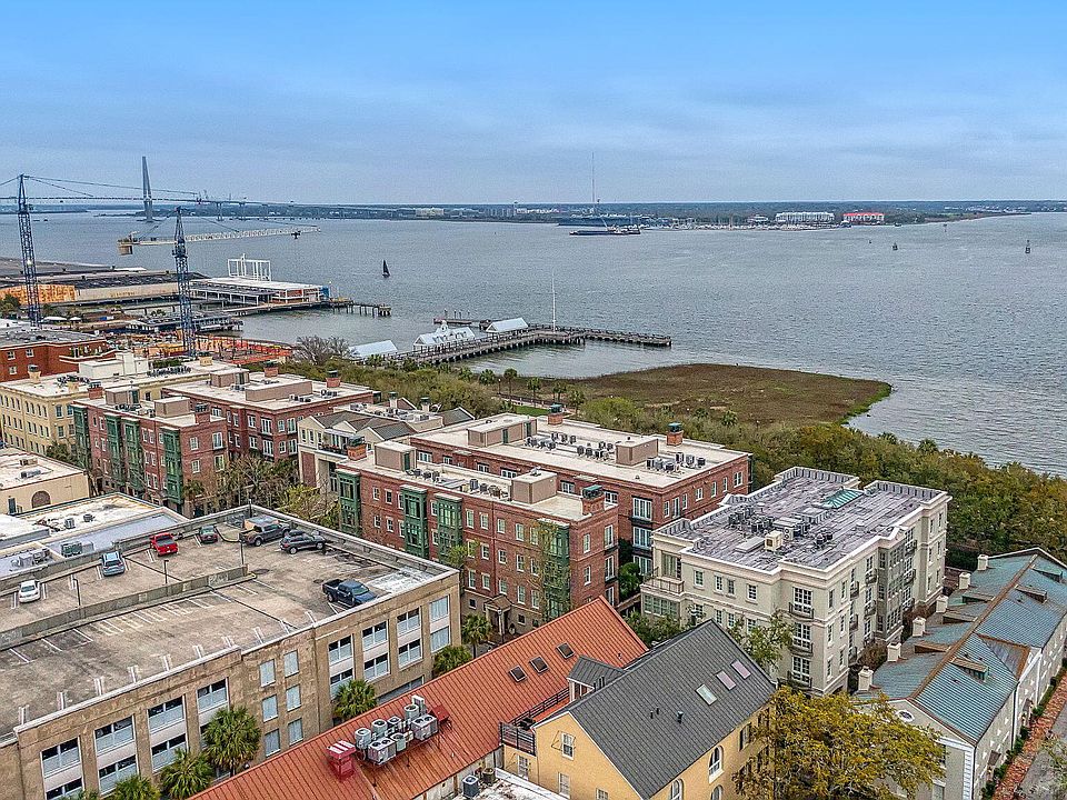 Fall in love with Charleston's French Quarter from your very own corner perch in the sky. This 1 Bedroom, 1.5 Bathroom furnished condo invites you to savor the city's charm with sweeping views of Waterfront Park and Charleston Harbor.On the 2nd floor, your private retreat comes alive with soaring ceilings, gleaming hardwood floors, rich crown molding, and French doors that open to a large balcony--the perfect setting for your morning coffee, mid-day meditation, or evening glass of wine. Two Juliet balconies add a touch of romance, while the chef's kitchen with a gas range and high-end appliances makes every meal feel like an occasion.Slip into the renovated bathroom for a spa-like escape, or arrive in style with private elevator access that opens directly into your home.A dedicated covered parking space with electric charger and a separate storage unit in the first floor garage keep everything nearby. Step outside into Downtown Charleston: world-class dining, art galleries, Dock Street Theater, King Street shopping, Rainbow Row, and The Market all just a stroll away. The building itself charms with modern perks: secured entry, concierge service, full-time staff, and rooftop access for stargazing, sunrise moments, or mingling under Charleston's pink skies. Come be part of the city's story where history flirts with modern living, and every day feels like a rendezvous with Charleston.