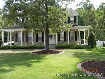 Located in Harnett County, just 10 minutes from Fort Bragg military installation and a short distance from schools, library, shopping , restaurants and much more. The home is located in the popular Anderson Creek area, across from the public safety fire station and within close proximity of the Anderson Creek (golf course) subdivision. The private vinyl fenced in back yard contains a rear storage building (equipped with power outlets and lighting; great for outside projects and/or tool storage). A double car parking driveway and double car garage allows for multiple vehicle space. This home includes a jetted tub (master bedroom), rear raised wood deck (has bench seating) with attached screened in porch (ceiling fan and lighting), all great for entertaining. Bedrooms and bonus room are located upstairs. Formal living room, dining room, and family room provides plenty of open living space downstairs. New Carpet, upgraded stainless steel appliances and washer and dryer