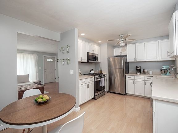 Adorable one level ranch located a short distance from the Holliston rail trail. Comfortable living room with hardwood floors and a bay window leads into a spacious eat in kitchen. Kitchen features new stainless steel appliances including a gas stove. Ample counter and cabinet space for storage. Off the kitchen half of the garage was converted into an office or dining space. 3 carpeted bedrooms and an updated full bath with a tub complete the living area. Large level lot with private tree-lined backyard. Large above ground swimming pool and a deck for summer entertaining. Storage shed for gardening tools. Central AC and furnace 2018. Water heater 2021. Passing Title V.