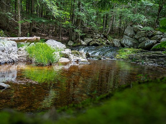 Enjoy the beauty of mature trees, well-maintained paths through the woods, and a beautiful brook with a strong flow from the mountain. Rock walls boarder the land and the the brook has lots of large boulders and stones creating both larger pools of water and beautiful waterfalls. Whether you're looking for a peaceful retreat or a place to explore, this property has it all.