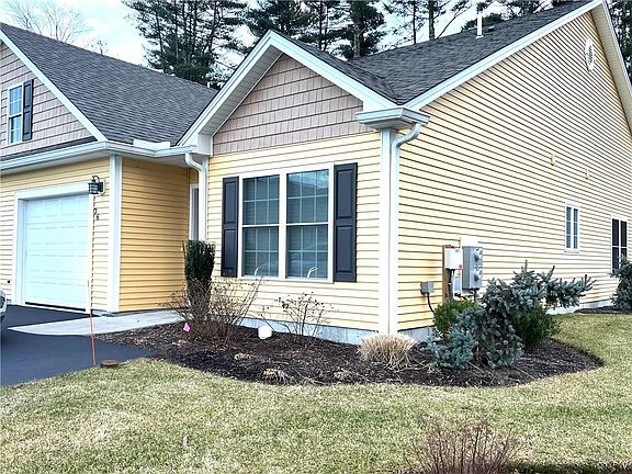 Welcome to Rivers Edge in Coventry - a 55+ community featuring this just like new one level home. This beautifully designed home features 1,500 square feet of living area plus an enclosed sunroom and one car garage with pull down storage. Upon entering, you are welcomed into the open living floor plan. The kitchen has a granite peninsula for an eating area as well as many cabinets for storage. The dining area and living room are spacious with a gas fireplace located in corner of the room. There is a laundry room with more storage/pantry space. The home has two bedrooms. The primary bedroom has a walk-in closet & also walk-in shower. This home also features a sunroom which could be used as a den/office or extension of the primary bedroom. Also has a Murphy bed for guests. The slider door in sunroom leads you to a private deck abutting almost 10 acres of open space woodlands and walking trails along the south branch of the Pawtuxet Valley River. The second bedroom is perfect size and features double closets with the main bath in that area of the home. Many upgrades & extras included in this unit and is wheelchair accessible. Come see this beautiful home. Use 1320 Main Street, Coventry for GPS.
