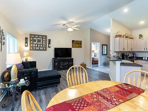 Simple and pristine 3 bedroom 2 bath home located in Lehigh Woods. This home offers an open floor plan and vaulted ceilings in the main living area. UPDATES include NEW vinyl plank floors and grey plush carpet, hot water heater and fans. Kitchen boasts tiled floors, wood cabinets and newer black appliances. The master bedroom suite embraces a double vanity and a master tub with a shower. Step out back and relax on your covered patio while admiring your nicely landscaped and private back yard. This home is conveniently located close to your local restaurants, stores, schools and other city amenities. Make an appointment to see this home, it won't last long!