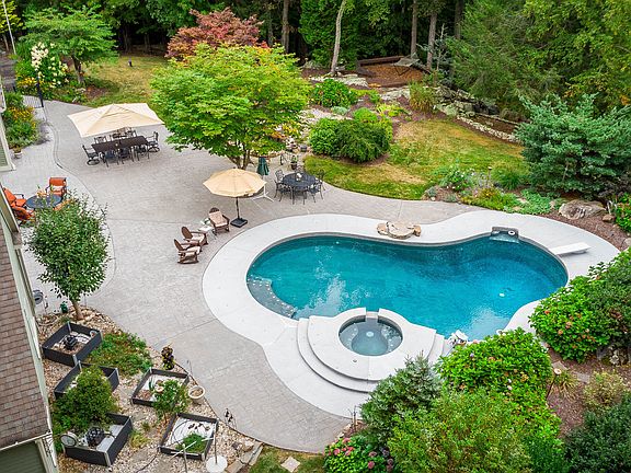 Nestled at the end of a peaceful cul-de-sac, this stunning home offers access to the scenic trails of Paugussett State Forest. Set on 2.1 acres of beautifully landscaped grounds, this private oasis features a heated gunite pool and spa, surrounded by a spacious, resort-style outdoor living area-ideal for relaxation and entertaining. Inside, the flexible floor plan offers room to grow and adapt, with 4 generously sized bedrooms and 3.5 bathrooms. Detailed with extensive trimwork throughout, the home exudes elegance and craftsmanship in every room. Whether you're seeking tranquility, space to entertain, or access to nature right from your backyard, this property offers it all. Don't miss the opportunity to make this serene retreat your own!