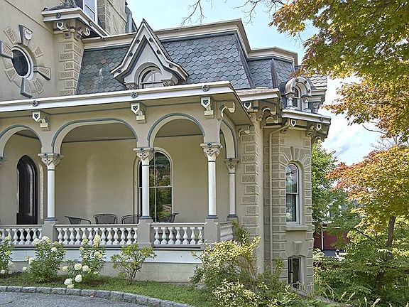 Own a piece of history with this spectacular home listed on the National Register of Historical Places. The Squire House built in 1872 by financier Henry J. Baker, is an architectural marvel of High Victorian Gothic style. Also known as Highland Cottage, it was the first concrete home built in Westchester and totally renovated in 5 phases starting in 1998. Prepare to be transported to a gilded era as you enter through the marble entry and 12 foot double doors. This breathtaking home offers 5800 sq ft in the main home, with 4 bedrooms, 3 full baths, 2 half, baths, 6 working gas fireplaces on 3 floors. Hudson views, library and cupola on top floor are bonus features. Lower level 2000 sq ft apartment, with separate entry has one bed, 2 full baths, fireplace in massive family room w/blt in wet bar & custom cabinets. Urban living, Hudson River views, and Sophisticated lifestyle. Squire House is a magical place that will fill you with joy, serenity and pride of ownership.