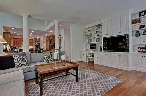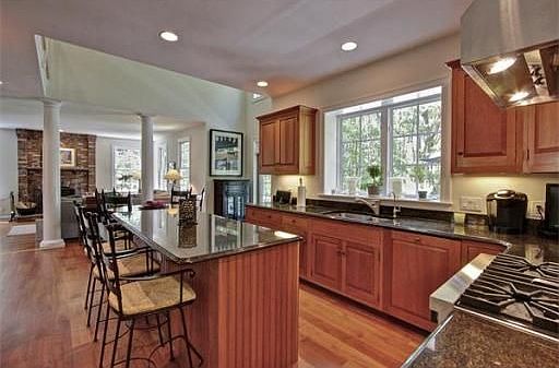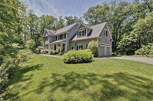 For more information on this property, contact William Raveis Real Estate, Mortgage & Insurance at 1-888-699-8876 or contact@raveis.com. This "2002" Farmhouse Colonial is privately nestled on over 3 acres with direct sidewalk access to Sherborn Center. Cathedral ceilings in both foyer and sun-filled eat-in kitchen, with transom windows & sliders to Brazilian Ipe deck. Appliances include Sub-Zero, Bosch, Thermador and stainless Viking gas range. Kitchen with granite island opens to family room with custom built-in cabinetry & wood burning fireplace. Newly finished American Cherry 5" flrs thru-out first floor and second floor hallway. Tiled mudroom has direct access to garage and easy access to half bath. Generously sized master bedroom has tray ceiling, built-in window seat, & master bath with classic marble floors and counters, separate dressing room and/or nursery. Nicely appointed finished walk-out lower level with great storage and sliders to custom brick & granite landscaping. Enjoy all that Sherborn has to offer from Farm Pond to its top rated school system.