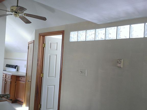 Small bedroom and living rooms but spacious eat in kitchen with breakfast bar, skylight, refrigerator, range, dishwasher, track lights, ceiling fans. Ample cabinets, pantry.