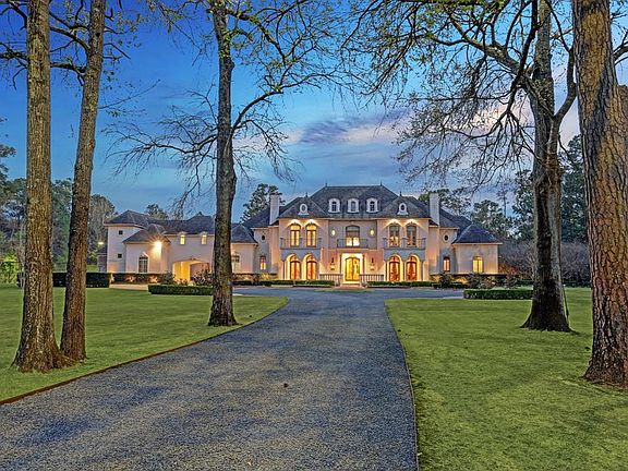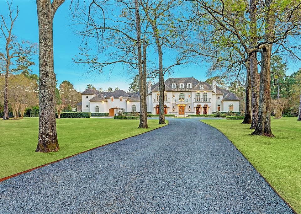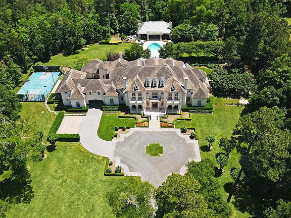 French style and old world charm 5 minutes to The Woodlands! Quarters for multi-generational living. A timeless estate on 6+ acres in prestigious gated Saddlebrook Estates- privacy and exclusivity close to shopping, restaurants and entertainment. The unique architectural design, attention to detail & the exceptional quality of materials add to the refinement & overall appeal of this home - Entertain on a grand scale or simply enjoy all the comforts & activities the property has to offer! Limestone, marble & wood floors span the open floorplan. Grand kitchen w/ 55 sq.ft. granite island, SubZero fridge & freezer, professional range, antique wood beams, Osborne Custom cabinets, & antique French terra cotta tile floor. 7 bedrooms w/en suite baths. EXTRAORDINARY grounds designed by the esteemed McDugald Steele Landscape Architects. The stunning resort pool & spa, Pool house, sports court, fire pit, outdoor kitchen, fireplace & covered outdoor areas will provide year-round entertainment.