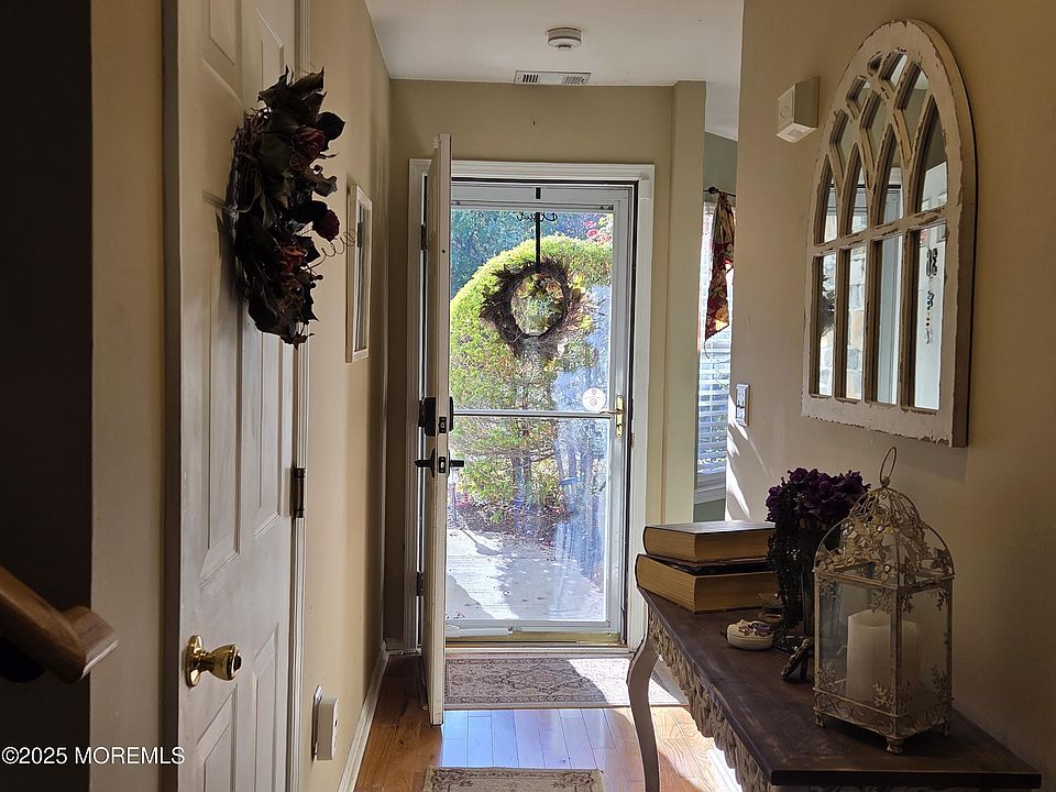 Wow! This beautiful unit is ready for you to love. Is in a private location in a cul-de-sac with extra parking. Great flow with eat in kitchen having stainless steel appliances. and corian counter top and white cabinets. The dining room with bay window is opened to the charming living room that has a custom granite gas fireplace. French doors open to private patio overlooking breathtaking landscape and trees. 1/2 bath, coat closet, and storage area. Upstairs primary bedroom with cathedral ceiling, 2 walk in closets, on suite bathroom has are soaking tub ,shower stall and corian counter + double sinks. 2 additional bedrooms are sunny and bright and full bath and laundry area. GSP, Asbury, beaches, Rt 18, shopping and restaurants. Tinton Falls has wonder parks and sport facilities.