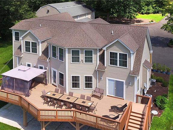 You have finally found your DREAM HOME in Sought After Neighborhood with Picturesque Private almost 2 Acre Property with Spectacular Sunset Views! Gleaming Hardwoods Thruout, This 4 Bedroom, 3 Full Bath Custom Built Colonial Checks All Your Wants & Needs Boxes! The Beautiful Open Layout Begins at the Foyer, Great Rm w Gas FP and Sliders to Expansive 50x60 ft Deck Overlooking Gorgeous Level Grounds Opens to Dining Area & Exceptional Entertainers Dream Eat In Kitchen w TWO Islands, Granite, Double Dishwashers & Ovens, Gas 6 Burner Cooktop w/Commercial Hood, Oversz Refrid/Frzr, Wine Fridge, Mudrm, 1st Fl Full Bth & Laundry Rm w/Storage/Sink Complete 1st floor layout. Upstairs NEWLY BEAUTIFULLY FINISHED Master Bedrm Suite w/Stunning Master Bath w His/Hers Sinks, & Walk In Luxury Tiled Rain Shower, On a Separate 2nd Fl Wing are 3 Addt'l Well Sized Bedrms, Two w Walk in Closets, a HUGE Loft which can be Office or Play/Study Area, & Full Bath w Double Sinks, Lower Level is Enormous w 2100+ Sq ft of Unfin Space in Sunny Walkout to Patio w High Ceilings & Lg Windows! Could easily be Future Inlaw Space, Rec Rm, Gym or Keep as Storage! 7 Garage Bays (2 are attached to main home) w Detached BONUS 3000 sq ft Two Story Barn/Garage w/Electricity (NEW Roof 2020) has 5 Garage Bays, Ramp, & is Perfect for the Car Enthusiast, Boater, Contractor, Handyman, Home Gym or Office PLUS Storage Space! Level Lush Lot w Room for a Pool, Privacy, City Water/City Sewer, Alarm Sys, Truly a Remarkable Home!