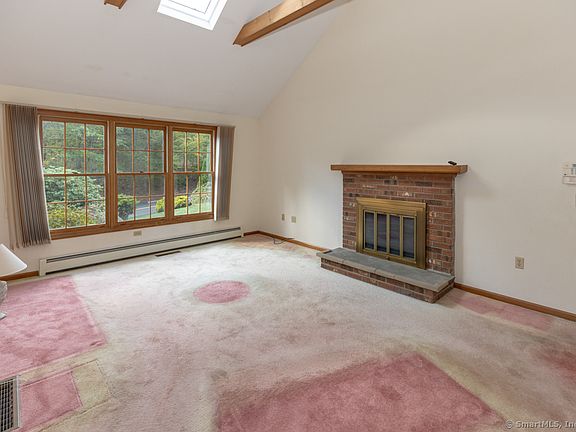 Privately set on over 2.5 acres with mature landscaping, this home offers comfort and convenience. The family room features a cathedral ceiling and fireplace, while the eat-in kitchen flows into an open floor plan with skylights and access to a large deck overlooking the private backyard. The primary suite includes a private bath and walk-in closet. Additional highlights include central air, generator hook-up, security system, newer furnace, and newer well pump. In very good condition, just needs new carpet or wood flooring to make it your own.