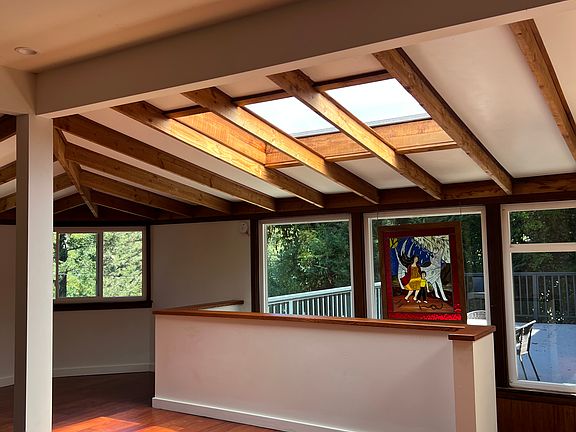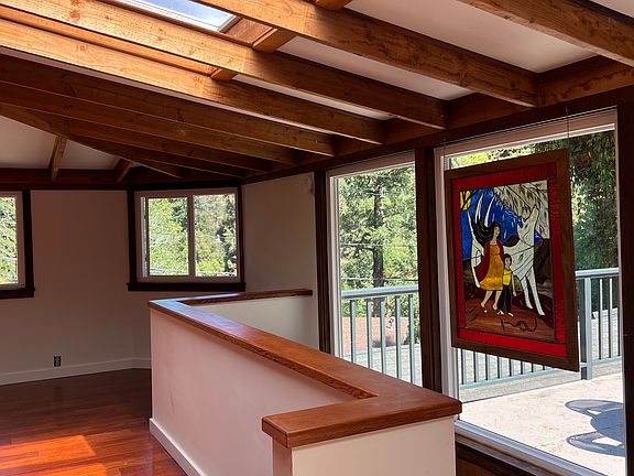 Gorgeous and unique artist's home nestled in the trees of Lagunitas! Four spacious bedrooms, three full bathrooms, huge deck with views of the trees, private back patio and plenty of space for gardening. Craftsman details throughout, exposed beams and beautiful custom mosaic work in kitchen, bathroom and wood burning stove area of living room. Kitchen features stainless steel fridge and brand new dishwasher. Washer dryer included. Radiant floor heating on second and third floor. New gas heater in first floor bedroom. Driveway fits 3 cars comfortably. Cats allowed, no dogs (sorry). This is a very special quiet neighborhood with great neighbors and walkable to the Lagunitas Store. Lagunitas Elementary is a five minute drive away and Archie Williams high school is a 15 minute drive or bus ride. 15-20 minutes to Point Reyes and Inverness. Looking for tenants who will love and care for this house and make it their own!