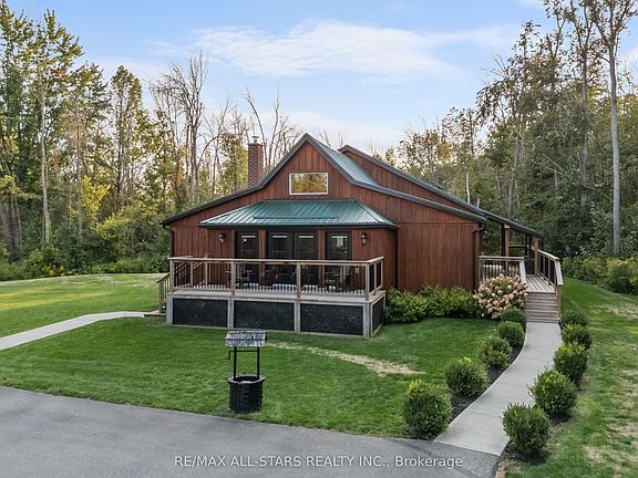 Beautifully renovated in 2019, this 1.5-storey home blends modern design with warm, natural finishes all nestled on a private, landscaped lot just steps from stunning Sturgeon Lake. Whether you're looking for a full-time residence or a year-round getaway, this property checks every box. Inside, the main floor impresses with its open-concept living space featuring soaring peaked pine ceilings, a skylight that floods the home with natural light, and a cozy woodstove perfect for cooler evenings. The chefs kitchen is a true standout: thoughtfully designed with state-of-the-art built-in appliances, granite countertops with gemstone accents, a spacious island with seating, and a separate pantry for added functionality and storage. Its ideal for entertaining or simply enjoying a quiet meal at home. Two walkouts from the kitchen and dining area lead to the expansive deck, perfect for outdoor dining, relaxing, or entertaining. A large laundry room combined with additional office space, a main-floor bedroom with pocket door, and a stylish 4-piece bath with quartz counters complete the main level. Upstairs, the lovely, large, and light filled primary suite features ample closet space and a convenient 2-piece ensuite. Throughout the home, you'll find ample storage, maximizing space and function. Step outside to a thoughtfully landscaped yard with extensive decking, a double detached garage(framed and ready for your own creation or potential for additional accommodation), and a storage shed. An irrigation system draws water directly from Sturgeon Lake via an underground line running beneath the road perfect for keeping the property lush with minimal effort. Conveniently located just 5 to10 minutes from Bobcaygeon and 10 minutes from Fenelon Falls, and it's under 2 hours from downtown Toronto. A rare opportunity for easy escapes from the city. This is lakeside living done right a perfect blend of style, functionality, and outdoor charm.