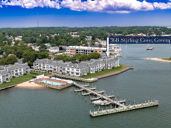 Just a ferry ride from Sag Harbor and the Hampton's, take in expansive waterfront views of the bay and Greenport harbor from the second floor balcony in this renovated open concept waterfront condo located in the private Stirling Cove condominium association. This light filled townhouse offers a private beach, 60' x 30' heated pool overlooking the bay, two tennis courts, private parking and is two blocks from the heart of Greenport Village and Mitchel Park. Perfect for enjoying the renowned restaurants, shops, parks, marinas and other attractions Greenport Village has to offer without the hassle of searching for a two hour parking spot. Appliances included are a washer/dryer, dishwasher, stove, microwave, refrigerator. Rental Permit # 23317, June $7,000 July $12,000 August $14,000