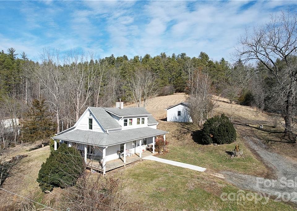 Convenient location offers many options here at 36 Stockton Branch Road. Approx. 13.83 acres with the original 1901 farmhouse that is currently a rental home. Some pasture land along with wooded acres. Nice easy laying land for development. This property is located in the Ivy Balance of Water Shed (WS-II). Has been confirmed with Buncombe County Planning and Development the property is limited to 1 unit per lot with a minimum lot size of 1 acre. House has original hardwood floors and beadboard. Kitchen has some updates approx. 5 or so years ago. Charming wrap around porch. Detached double car garage. Bonus Room upstairs currently used as a bedroom not counted in total square footage due to ceiling height. There is a 2nd home on site but UNSAFE to walk in.