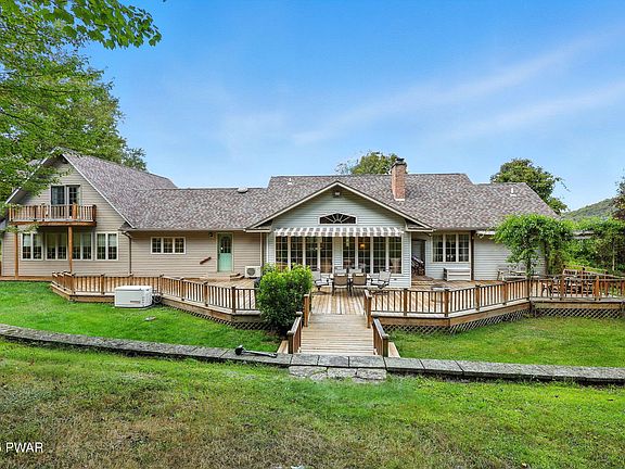 A one-of-a-kind 67-acre private country estate just 15 minutes to Honesdale and 25 minutes to Elk Mountain, this remarkable property features 6 bedrooms, 4 bathrooms, multiple living areas, and exceptional outbuildings, all surrounded by breathtaking scenery. The paved quarter-mile driveway winds through rolling fields, fruit trees, and miles of historic stone walls, leading to a striking stone-and-vinyl residence carefully maintained by the same family for years. Step inside to bright living spaces filled with natural light and countryside views. A brick wood-burning fireplace anchors the expansive main living area, where the open kitchen, dining room, and sunroom connect seamlessly. The kitchen offers granite countertops and quality cabinetry, while the sunroom's walls of windows frame the serene landscape. The main-level primary suite is a retreat with vaulted ceiling, spa-like bath featuring a jacuzzi tub with views, walk-in shower, and spacious walk-in closet. Two additional bedrooms, a tiled full bath, and convenient laundry complete this wing. The finished lower level impresses with a sprawling family room accented by stonework and a bar, built-in cabinetry, an office/craft room with refrigerator, abundant storage, and a workshop. A highlight of this estate is the separate living quarters, with its own entrance, primary suite, full bath, office, generous living/dining area with kitchenette, plus two more bedrooms and another full bath upstairs--perfect for extended family, guests, or an in-law setup. Outdoors, relax on the expansive deck and porch while overlooking rolling acreage, miles of stone walls, and extensive stream frontage for fishing, swimming, and recreation. Outbuildings include a 30x40 insulated workshop with wood burner, a 40x40 storage barn, and a detached stone-front garage with stove and workspace. This extraordinary property offers unmatched privacy, beauty, and timeless character--an estate of this scale and setting is truly rare.