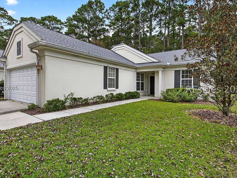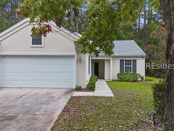Nestled on a quiet cul-de-sac, this 2 bedroom, 2 bath + den Egret model is full of charm and opportunity. The eat-in kitchen with pantry, separate dining and living areas, and Carolina room with fireplace create a warm, functional flow. Step out to the screened porch and enjoy serene wooded views. Great bedroom separation and cozy den is perfect for a home office, craft room or a space for guests. This well-maintained home offers a wonderful chance to refresh and customize to your own taste in Bluffton's most sought-after 55+ community. Golf cart included!
